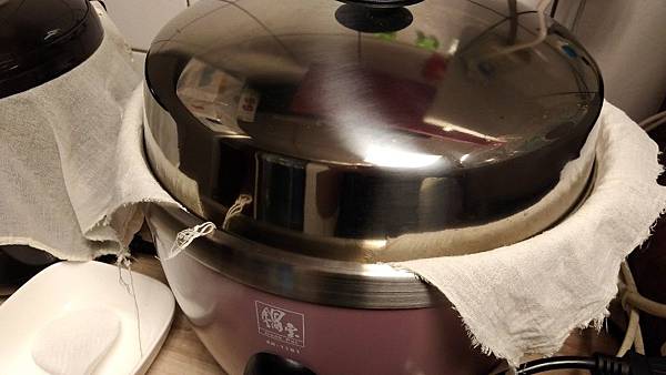 蓋鍋蓋前先放一紗布,可必免鍋蓋上的水氣掉入影響口感