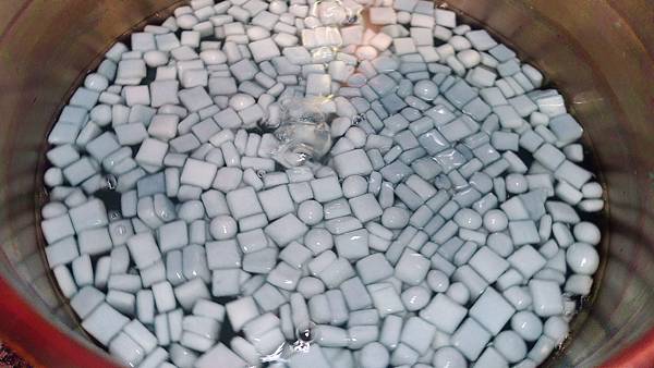 (冰水可以讓粉圓急速降溫,收縮後的粉圓就會變得很Q喔!)