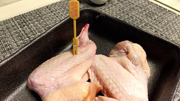 取出雞趐後將表面的醬料抹開後
