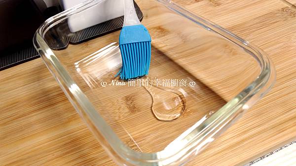 先取一玻璃保鮮盒並塗上一層薄薄的植物油備用