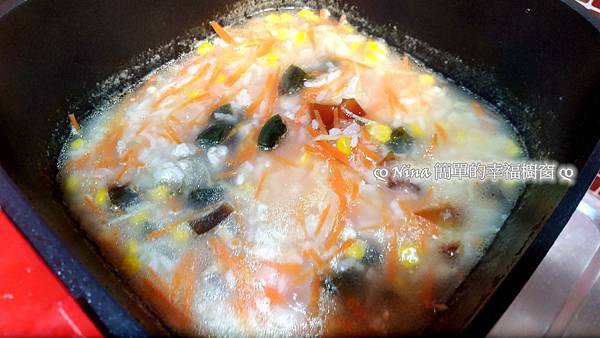 約煮至個人喜好程度後再加入玉米及皮蛋