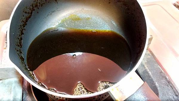 (1)黑糖+砂糖+少許的水約80cc (糖只要潤濕)用小火煮